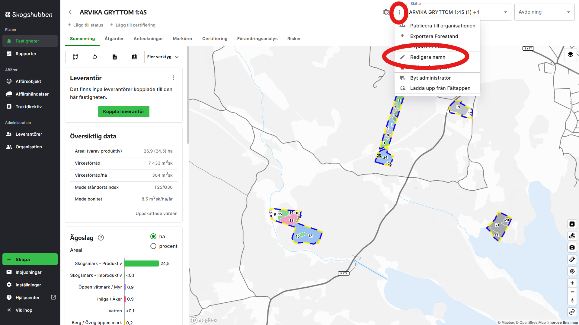 I videon visar vi hur du ändrar namn på en fastighet från kartan eller från tabellvyn.